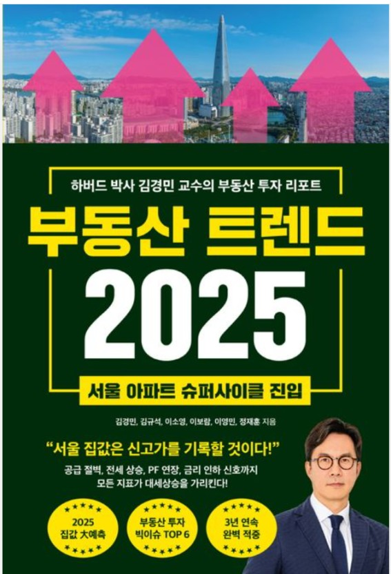 오늘은 다가오는 2025년 부동산 트렌드를 알아보고자 합니다. '부동산 트렌드 2025' 라는 책은 6가지 파트로 구성되어있습니다. 서울지역 집값은 계속 상승 할 것이라는 예측입니다. 근거로는 공급부족으로 인한 전월세 가격상승, 전세사기로 인한 아파트 가격 주도적인 상승, PF부실로 인한 공급 부족등이 있습니다. 24년 시작된 강남권 아파트 가격의 지속적인 증가, 서울시의 폭발적인 매매 거래 증가량을 들어 25년 상승장을 예측하고 있습니다.